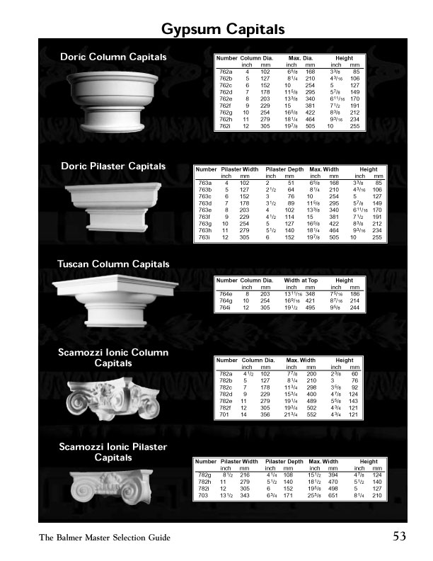The Balmer Studios Gypsum Capitals 762a , 762b, 762c , 762d , 762e , 762f , 762g , 762h , 762i , 763a, 763b , 763c , 763d , 763e , 763f , 763g , 763h , 763i , 764e , 764g, 764i , 782a , 782b , 782c , 782d , 782e , 782f , 782g , 782h , 701 , 703