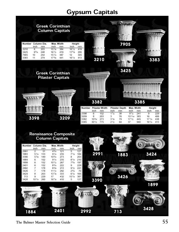 The Balmer Studios Gypsum Capitals 3210 , 3425 , 7905 , 3883 , 3398 , 3209 , 726 , 3382 , 3385 , 2991 , 1883 , 3390 , 1884 , 1899 , 2401 , 2992 , 3426 , 3424 , 713 , 3428