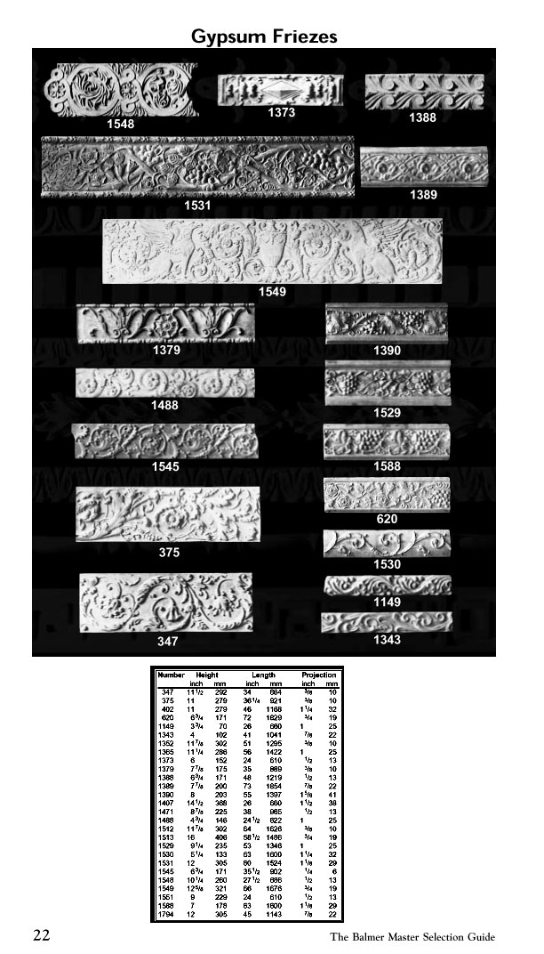 The Balmer Studios Gypsum Friezes 1548 , 1373 , 1388 , 1531 , 1389 , 1549 , 1379 , 1488 , 1545 , 375 , 347 , 1390 , 1529 , 1588 , 620 , 1530 , 1149 , 1343