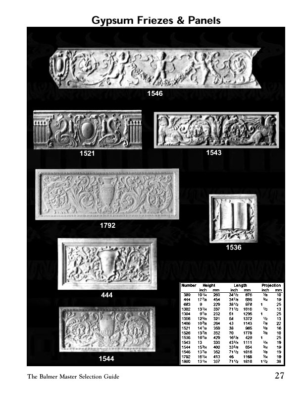 The Balmer Studios Gypsum Friezes 1546 , 1521 , 1543 , 1792 , 444 , 1544 , 1536
