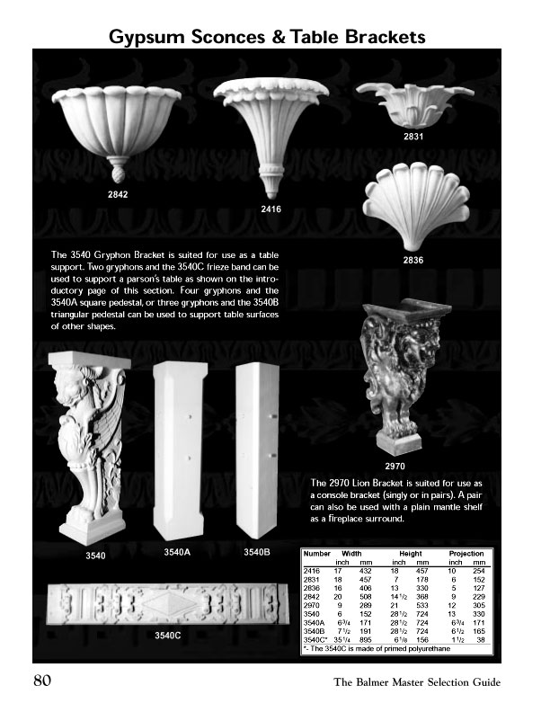 The Balmer Studios Gypsum Sconces & Table Brackets 2842 , 2416, 2831 , 2836 , 3540 , 3540A , 3540B , 3540C