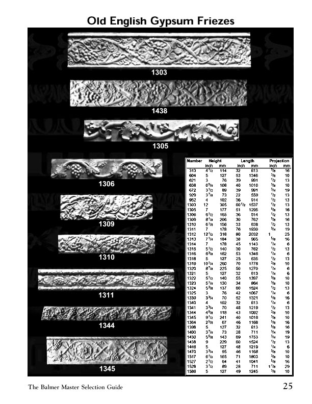 The Balmer Studios Gypsum Friezes 1303 , 1438 , 1305 , 1306 , 1309 , 1310 , 1311 , 1344 , 1345